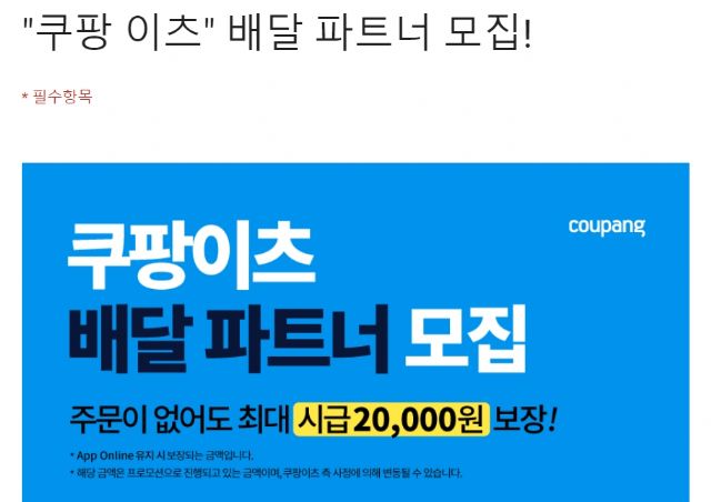 1일 관련업계에 따르면 쿠팡은 최근 구글독스를 통해 쿠팡이츠 배달 파트너 모집에 나섰다.