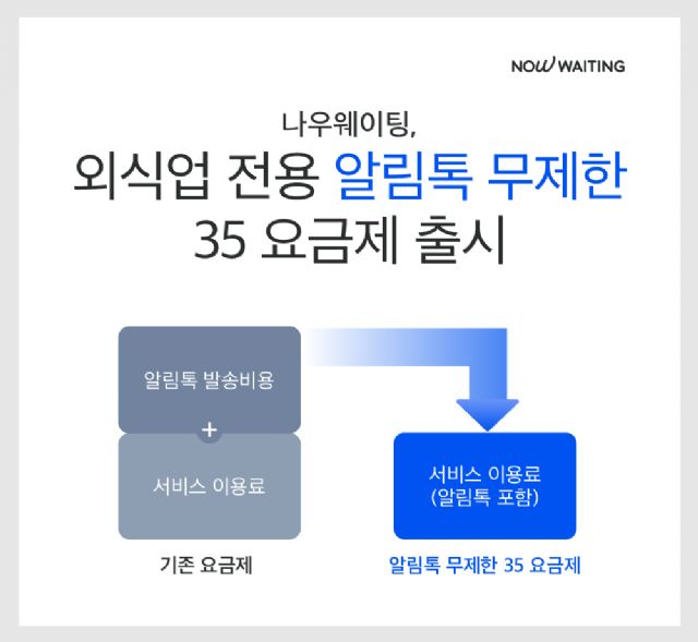 나우버스킹(대표 전상열)은 외식업 자영업자를 위한 스마트 웨이팅 요금제 '외식업 전용 알림톡 무제한 35 요금제'를 출시한다고 17일 밝혔다.