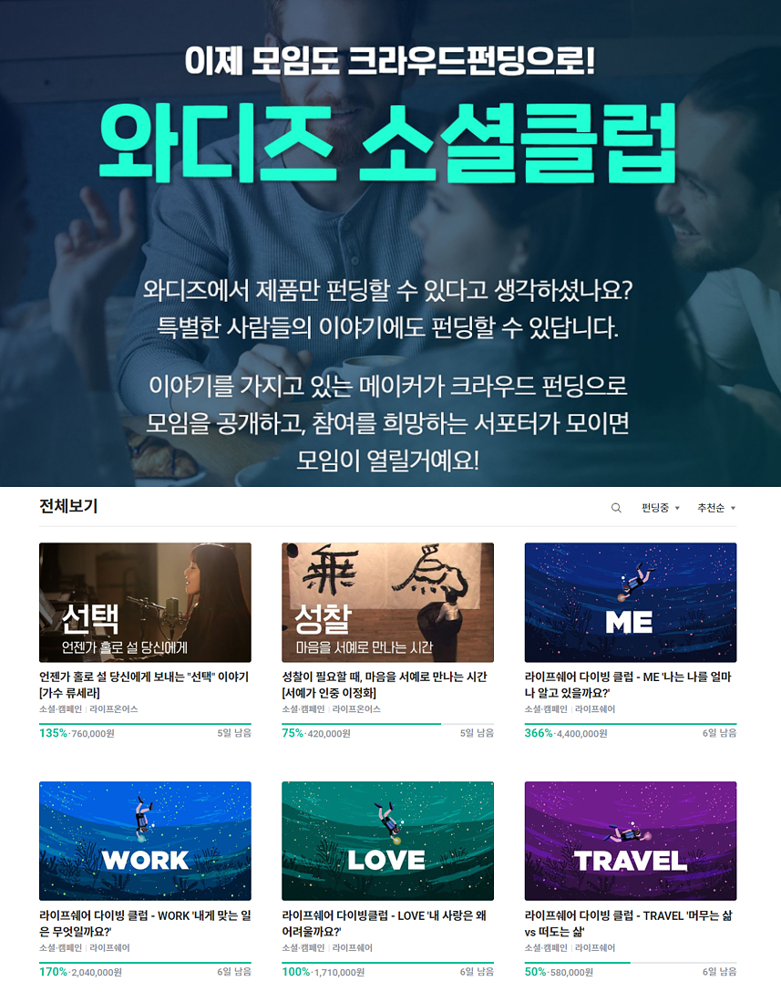 5. 와디즈, 모임 프로젝트 '와디즈 소셜클럽' 런칭