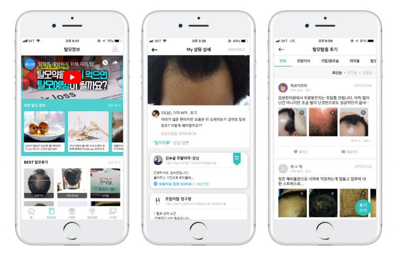 오프라인 방문 없이 앱을 통해 탈모 전문 병원의 위치, 방문 후기, 비용, 이벤트 등을 확인하고 전문가 다수의 의견과 비용 비교를 통해 합리적인 정보를 얻을 수 있다.