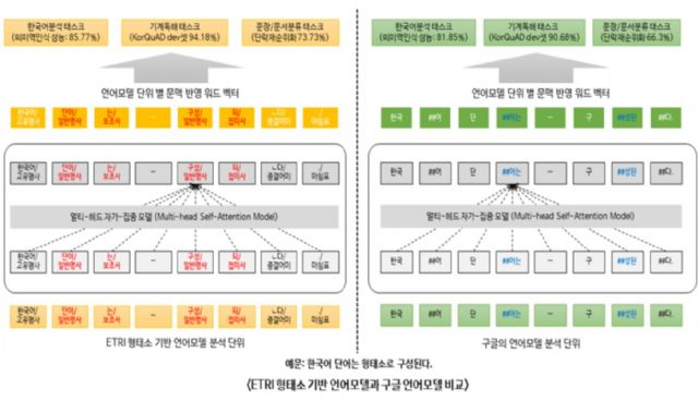연구진이 공개한 모델은 두 종류다. 구글의 언어표현 방법을 기반으로 더 많은 한국어 데이터를 넣어 만든 언어모델과 한국어의 ‘교착어’ 특성까지 반영해 만든 언어모델이다.